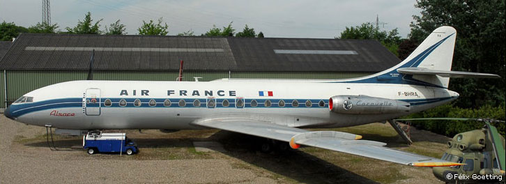 Après la Seconde Guerre mondiale, toutes les grandes entreprises aéronautiques françaises envisagent de lancer la construction d'un avion de transport civil. L'étude définitive de la Caravelle commence à la SNCASE, qui deviendra Sud-Aviation en février 1957. Le prototype SE 210 effectue son premier vol le 27 mai 1955. C'est Air France qui inaugure la première ligne régulière avec cet appareil le 6 mai 1959, immatriculée F-BHRA «Alsace», suivie par la plupart des compagnies scandinaves, maghrébines et françaises.